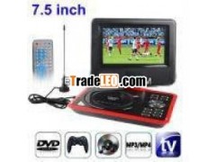 7.5 inch TFT LCD Screen Digital Multimedia Portable DVD with Card Reader & USB Port, Support TV